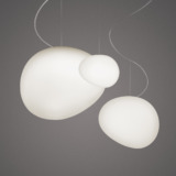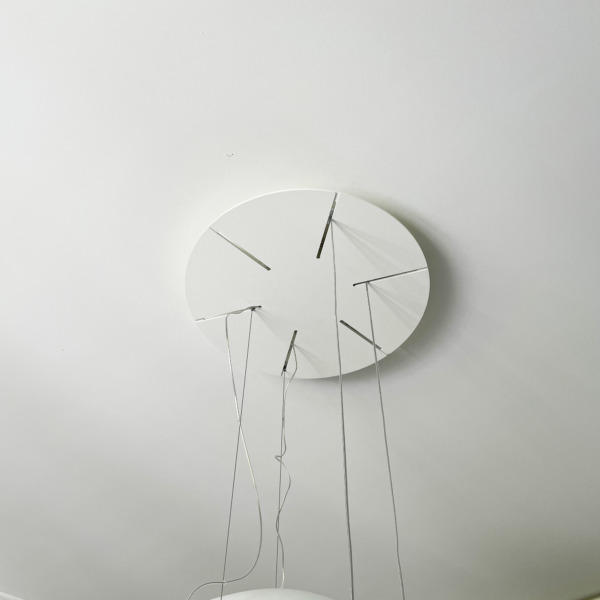 Nous vous proposons les 3 suspensions Gregg de Foscarini avec une rosace ronde couleur blanche avec les câbles de 340 cm. Possible des câbles de 10 mètres.