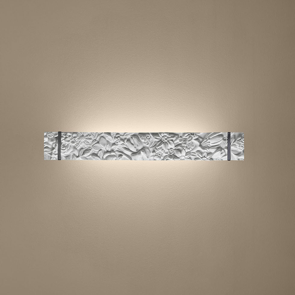 Fruit d’une alliance subtile entre design contemporain et savoir-faire artisanal, Fregio se compose de bas-reliefs floraux en céramique émaillée, sublimés par un éclairage à diodes électroluminescentes. Chaque pièce incarne la rencontre entre la poésie de la tradition et l’élégance de la modernité.