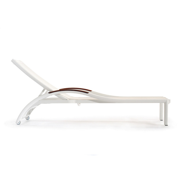 Les accoudoirs en teck en option créent un contraste original avec la structure blanche en aluminium laqué.