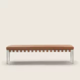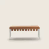 Le banc Gregory de Flexform se distingue par sa base métallique originale adoucie par la présence du cuir sellier, matériau utilisé pour créer les parties apparentes des sangles qui soutiennent les coussins de l’assise. Pratique, le banc Gregory permet de nombreuses configurations : mariez-le au lit ou au canapé de la même collection, réunissez-le autour d’une table, ou appuyé à un mur de votre entrée pour enfiler vos chaussures !