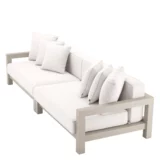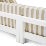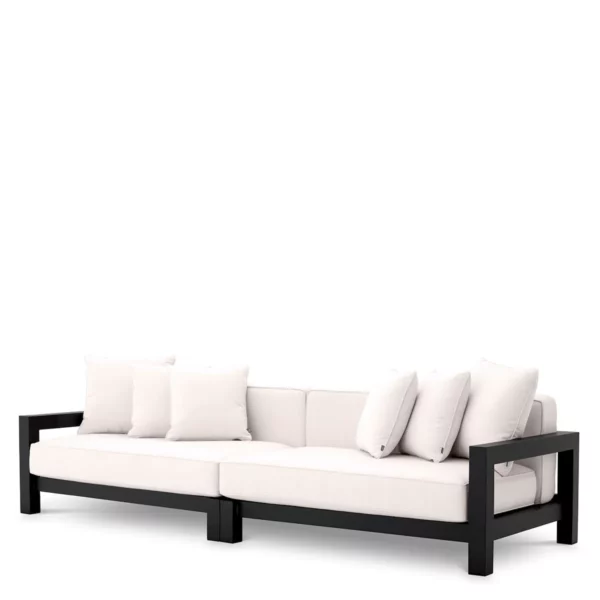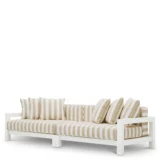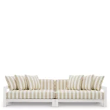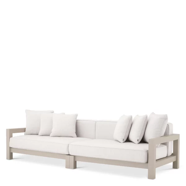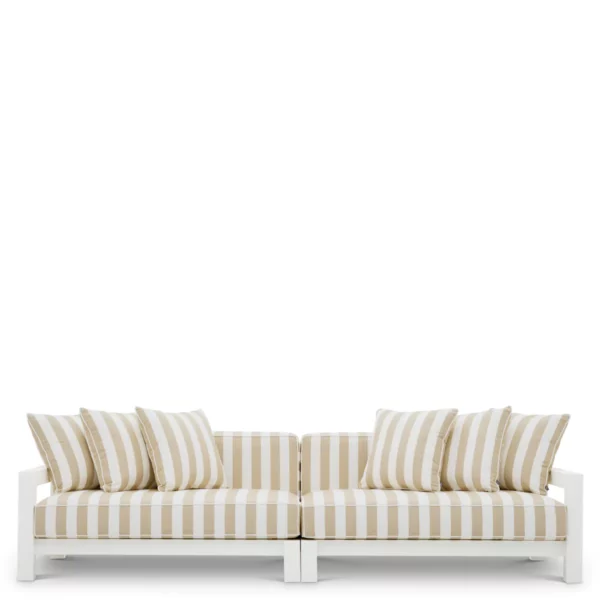 Ce canapé luxueux 3 places est fabriqué avec soin à partir d’aluminium durable thermolaqué. Ce matériau recyclable et durable est très résistant à l’eau et aux agents atmosphériques. Ses coussins d’assise et de dossier moelleux sont recouverts de toile Sunbrella. Ce canapé d’extérieur Cap-Antibes affiche un style à la fois élégant et luxueux.