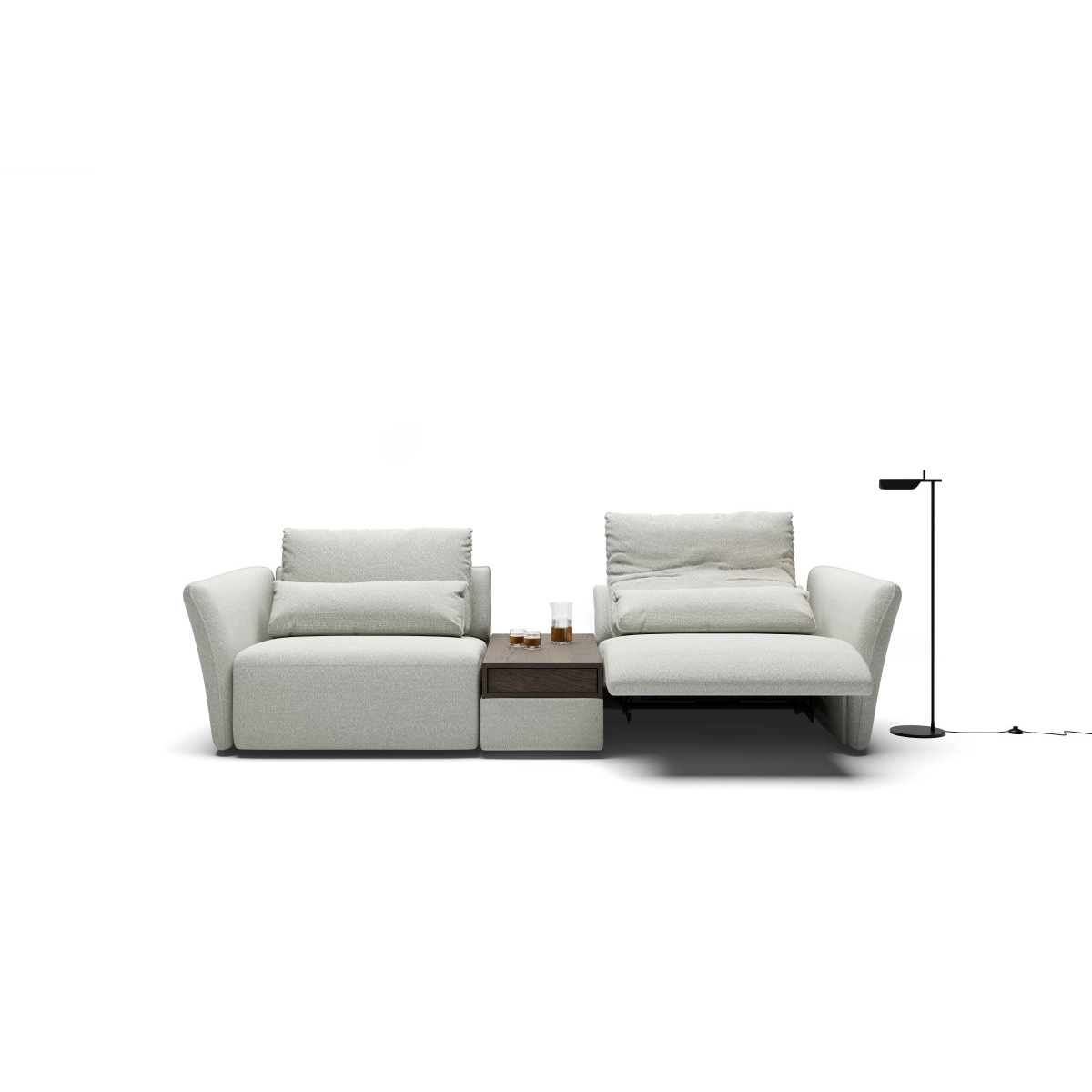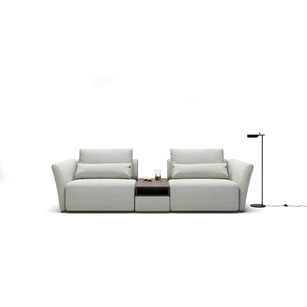 Intégré dans le canapé modulable sans aucune différence visuelle avec les autres modules, il conserve la même esthétique raffinée tout en offrant un confort sur mesure.