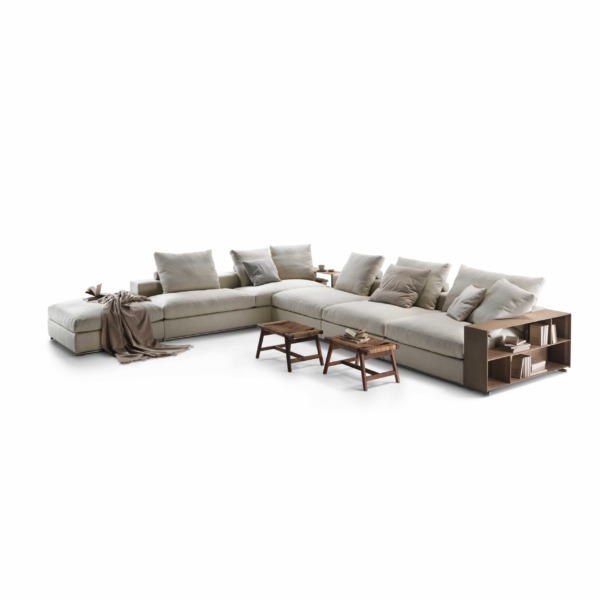 Bestseller incontesté de la collection Flexform, le canapé Groundpiece de Flexform est conçu pour favoriser une assise plus détendue et informelle avec ses grands coussins en duvet d’oie. Groundpiece permet une personnalisation des garnissages qui peuvent être réalisés en duvet d’oie, dans la version « premium », ou en Dacron.
