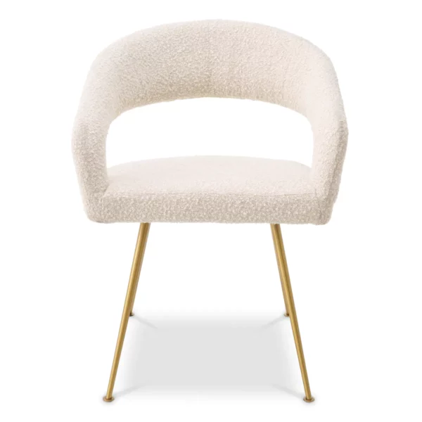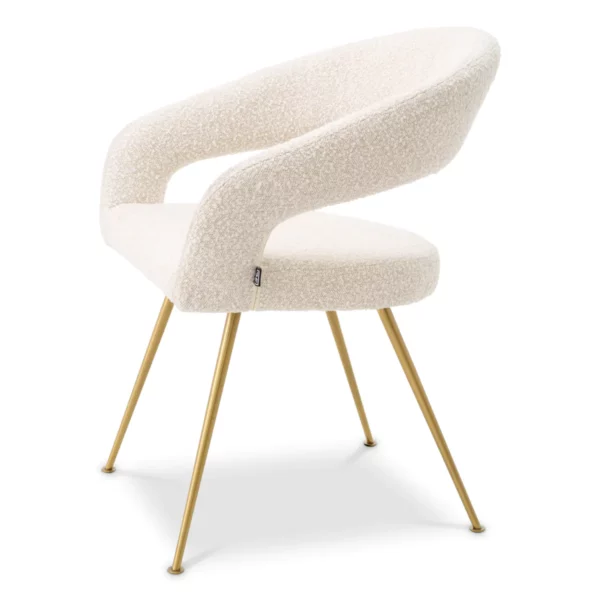 Son somptueux revêtement Bouclé Sonate de la chaise Bravo délivre une explosion d’énergie, tandis que ses pieds en métal épurés respirent la sophistication. Pièce emblématique de toute salle à manger, cette chaise Eichholtz incarne le luxe et le confort.