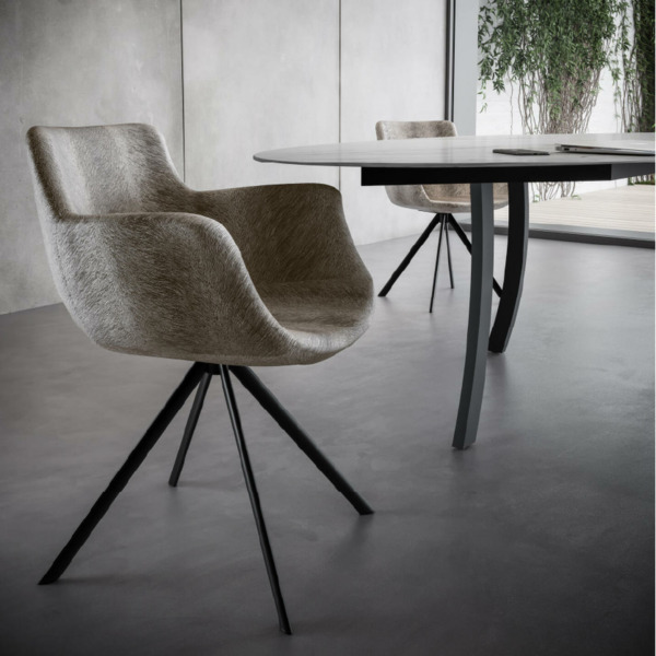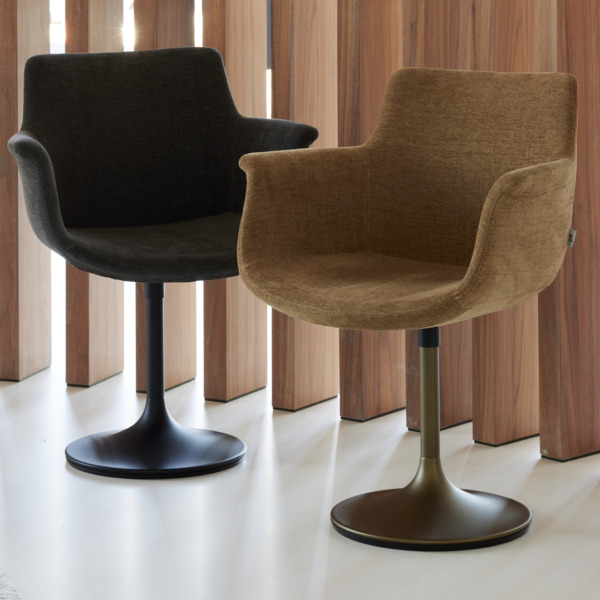 Cette chaise CHAGALL design et élégante de JOLI est recouvert d’un tissu luxueux et particulièrement doux. Son délicat pied en métal laqué contraste avec les matériaux de l’assise.