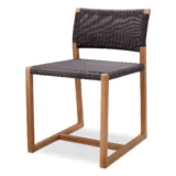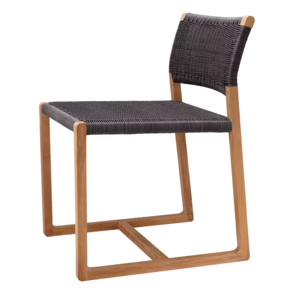 La chaise Griffin Outdoor de Eichholtz est fabriquée à partir de bois de teck de catégorie A provenant de forêts gérées de manière responsable, la chaise présente une finition en teck naturel intemporel. Son siège et son dossier en fibre synthétique en polyéthylène grise (recyclable à 100%) sont durable et résistante pour l extérieur. Cette fibre synthétique reproduit l’aspect chaleureux et authentique typique du tressage en fibres naturelles.
