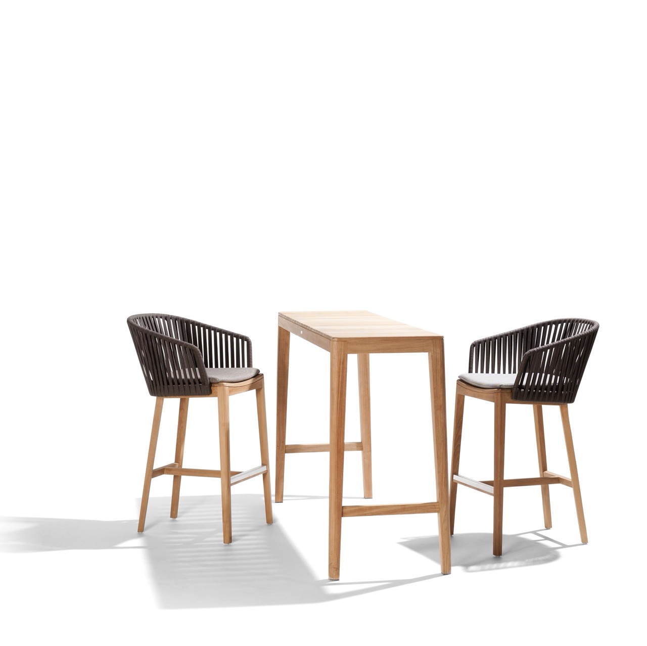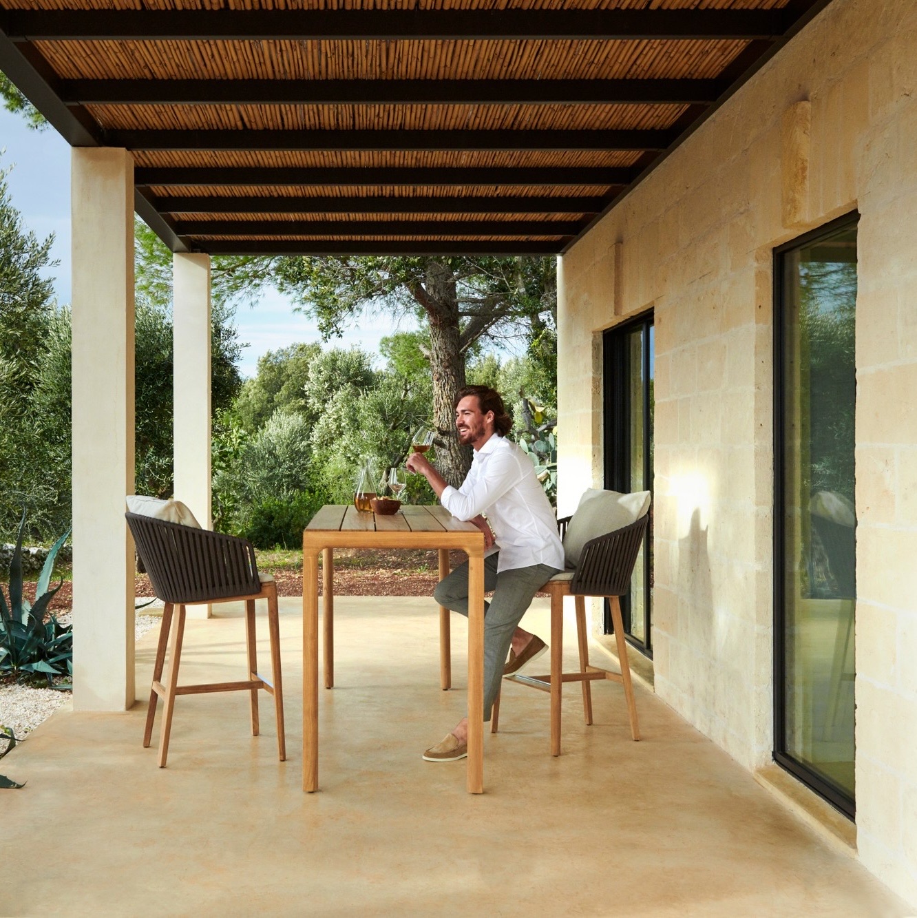 Le design léger de la collection Mood, combinant teck chaleureux et dossiers tressés à la main, crée une ambiance accueillante sur votre terrasse. Ses pieds arrondis en teck renforcent cette douceur. Le tressage en Tricord, une fibre écologique et résistante aux intempéries, offre un toucher agréable.
