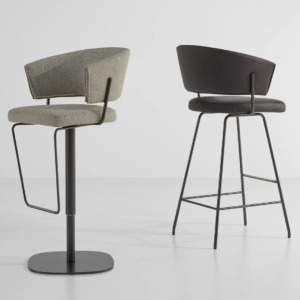 Polyvalente et moderne, la chaise haute Noor Too de Bonaldo du designer Mauro Lipparini satisfait à toutes les exigences. Une chaise haute très confortable avec une assise entièrement rembourrée et une base en métal à quatre pieds et repose-pieds. Elle est personnalisable grâce à de nombreux revêtements et finitions à consulter dans notre showroom.