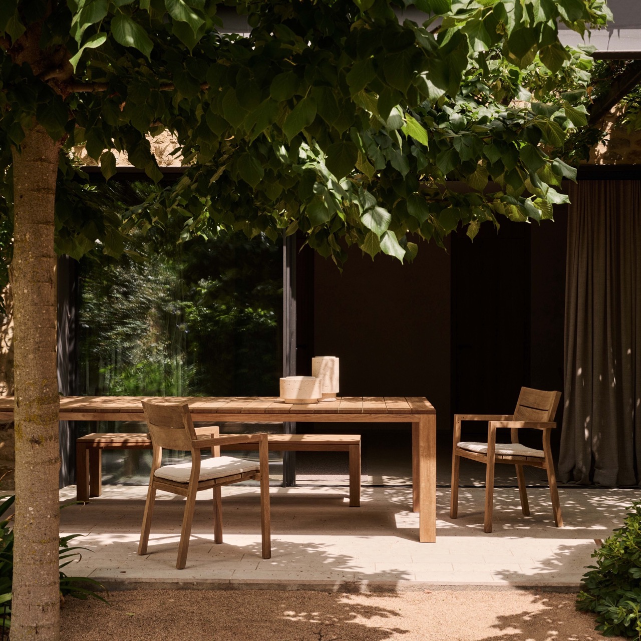 La chaise haute Kos de Tribù allie raffinement, confort et solidité. Son design pur et puissant, combiné à de larges lattes en teck d’exception, évoque modernité et stabilité.
