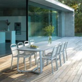 Créée par le designer Thomas Sauvage, cette chaise MARUMI EGO Paris est un mariage parfait entre le teck (lattes) et l’aluminium thermo-laqué (structure). Elle est toutefois aussi disponible entièrement en aluminium. Éloge de la rondeur, Marumi vous invite à la douceur et à la sérénité. Une version fauteuil de la chaise Marumi est également disponible.