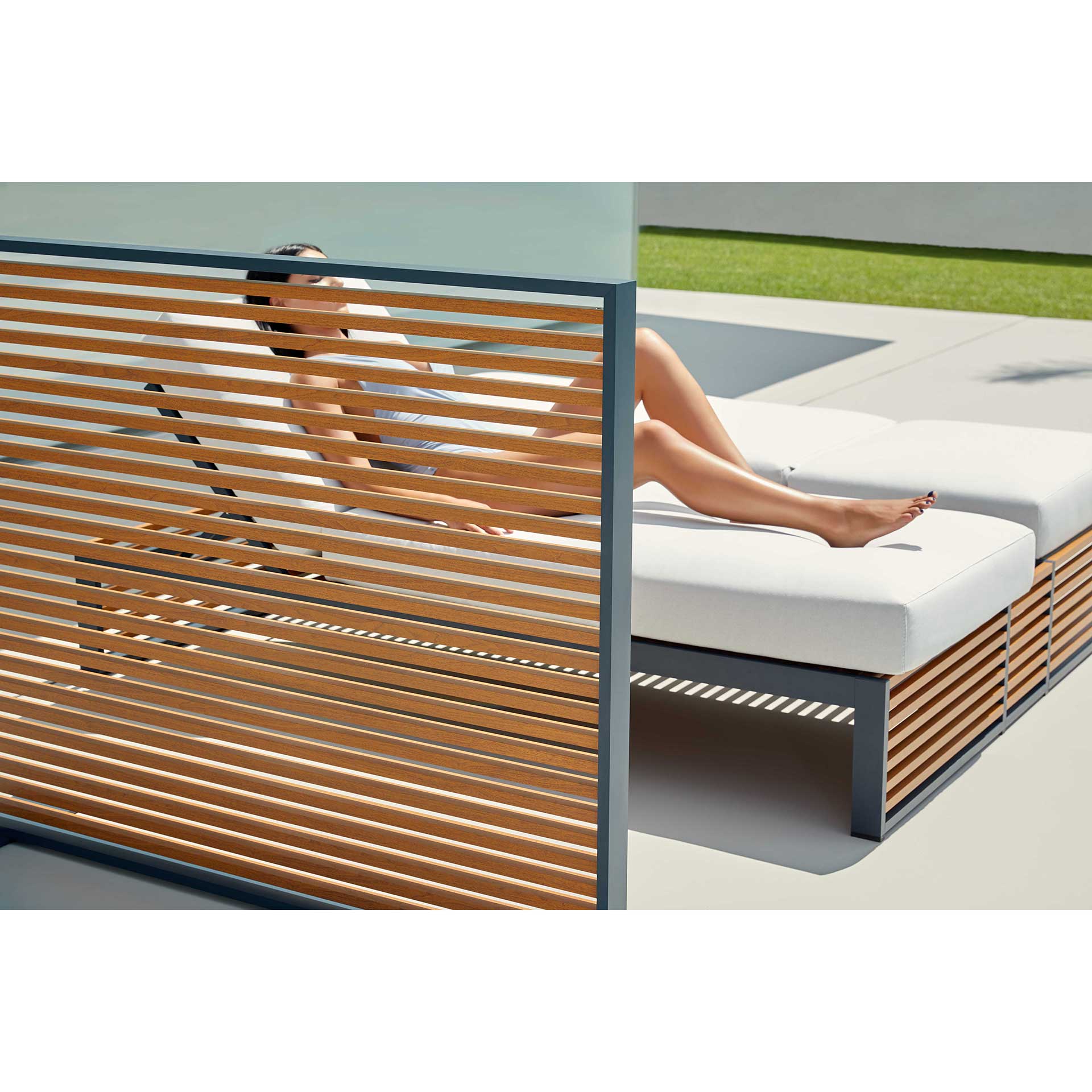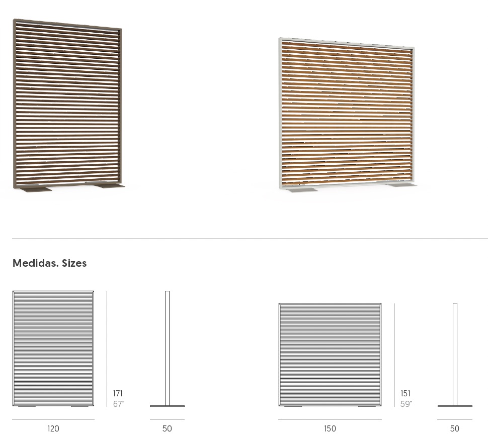 La Cloison de jardin DNA Gandia Blasco est un brise vue de jardin contemporain haut de gamme en aluminium thermolaqué mat. Intimité, délimitation des environnements et jeu subtil avec la lumière et l’ombre . Indépendant et très pratique car relativement léger pour le déplacer, résistant aux UV, intempéries et chocs et très stable grâce aux piètements en aluminium.