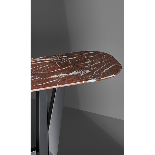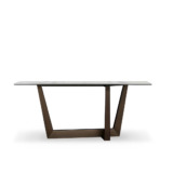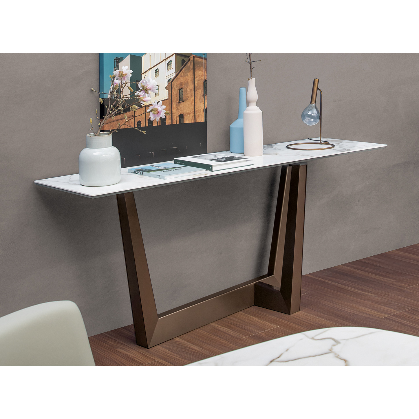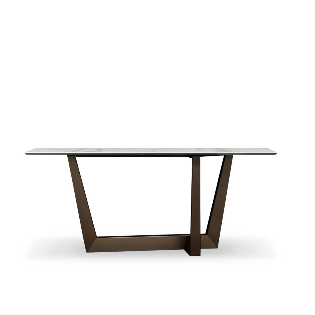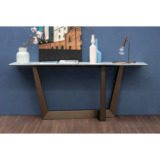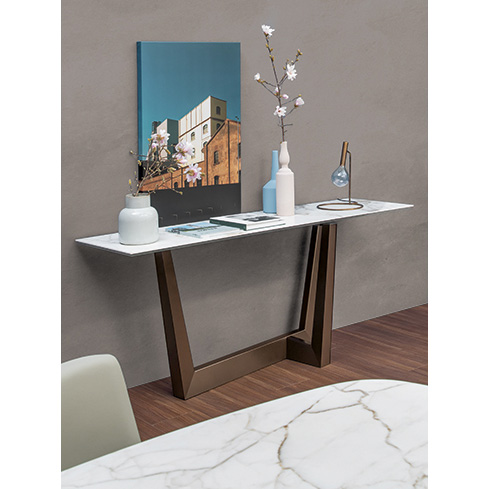 Design épuré et lignes équilibrées : la console Art associe une base en métal graphique à un plateau fin qui semble suspendu.