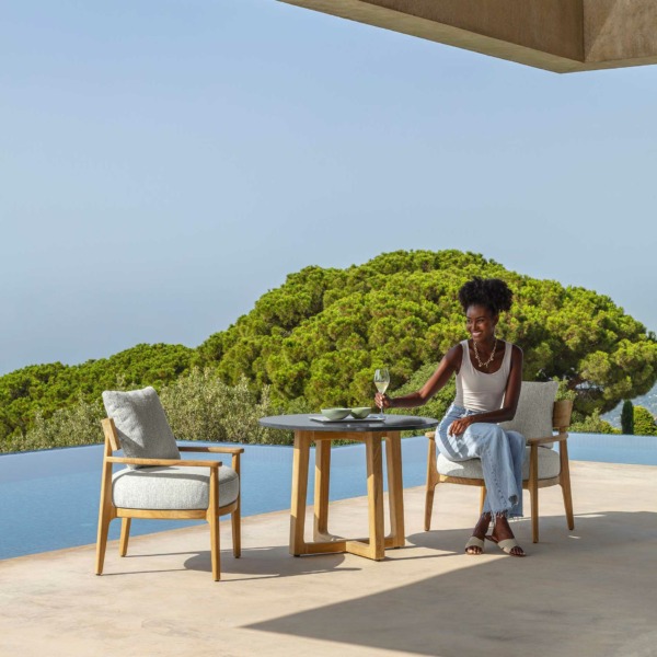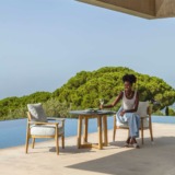 Le fauteuil Ever de Talenti présente un superbe travail du bois de Teck avec des finitions parfaites. Très confortable grâce à l’assise haute et des coussins réalisée en mousse quick dry foam avec un tissu haut de gamme, garantissant une haute résistance à la lumière et à l’abrasion.