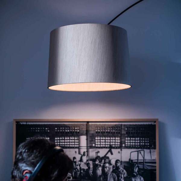 Le lampadaire TWIGGY WOOD de Foscarini est obtenu par la superposition de deux feuillets légères en bois de chêne blanchi (abat-jour). Base circulaire en métal laqué poudre époxy en couleur grège ou noir. Fournie avec 4 contrepoids à insérer au dessus du diffuseur pour en réguler la hauteur. Le câble transparent présente un variateur servant d’interrupteur on/off. La source lumineuse est entièrement renouvelé avec une nouvelle puce LED conçue spécialement par Foscarini pour garantir une lumière encore plus confortable et chaleureuse, grâce notamment aux reflets du bois.
