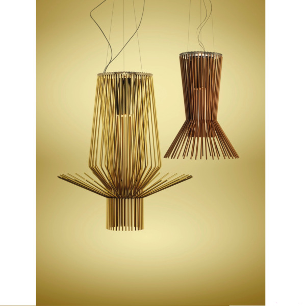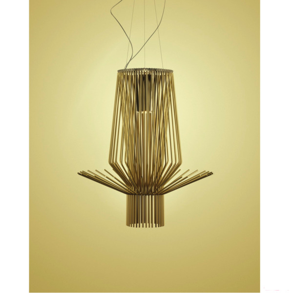 La famille de luminaires Allegretto se décline en trois versions sur le thème de l’harmonie de lignes délicates, créant des formes tridimensionnelles et des jeux d’ombres et lumières. Véritable bijou de design contemporain, la lampe Allegrotto de Foscarini présente de superbes lueurs dorées.
