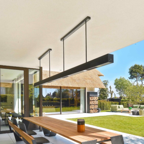 Le BEEM est une lampe chauffante suspendue HEATSAIL avec une technologie nouvelle pour les espaces extérieurs abrités comme une loggia, une terrasse en partie couverte.