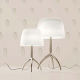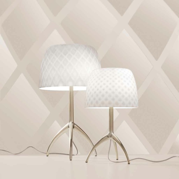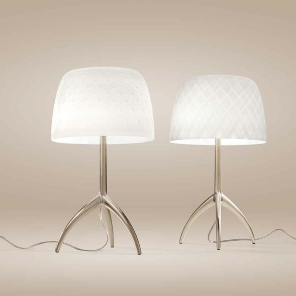 Cette lampe lumière iconique et indémodable de Foscarini fête son 30ème anniversaire avec deux versions à base métallique couleur champagne et des diffuseurs en verre soufflé blanc aux motifs 3D (bulles ou losanges) en édition limitée à 1100 pièces numérotées et autographiées par le designer Rodolfo Dordoni.