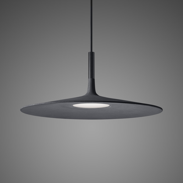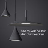 L’utilisation de pigments a permis d’obtenir trois tonalités chromatiques : un gris classique rappelant l’aspect brut du matériau, un blanc élégant et un marron chaud et intense. La suspension Aplomb se distingue par son esthétique épurée et la fluidité de ses lignes. Sa silhouette plate et large dégage force et équilibre.
