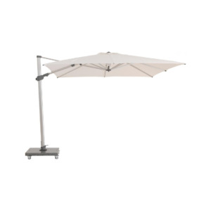 Construction ultra solide fait pour des endroits où il y a beaucoup de vent (58km/h). Le parasol « Caractère » est inclinable en hauteur, à gauche et à droite avec une rotation possible de 360 degrés.