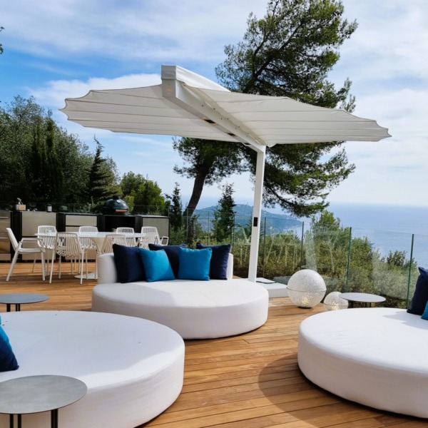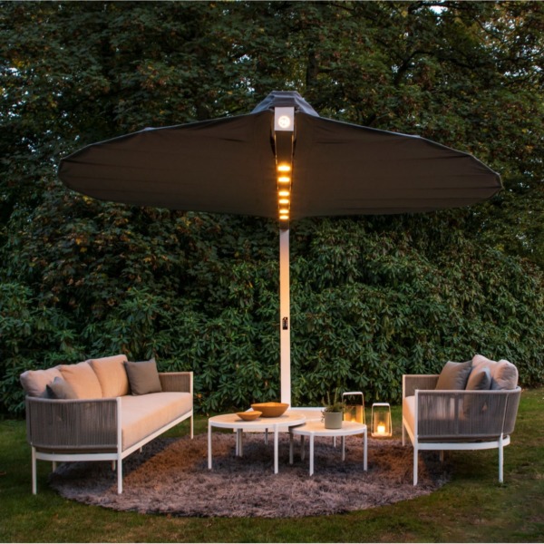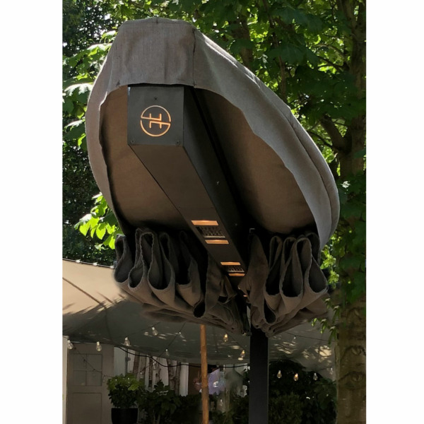 Nouveau parasol chauffant LEAF de Heatsail permet de vous réchauffer, d’éclairer et de vous rafraichir avec son système de Brumisateur !
