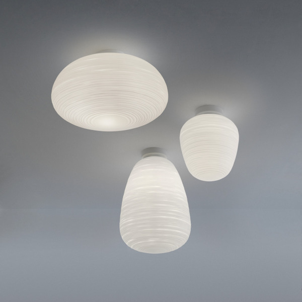 Le plafonnier Rituals de Foscarini parle le langage de la beauté et de la poésie. Le verre soufflé à la bouche est caractérisé par de fines incisions qui évoquent précisément les traces d’un polissage artisanal savamment exécuté.