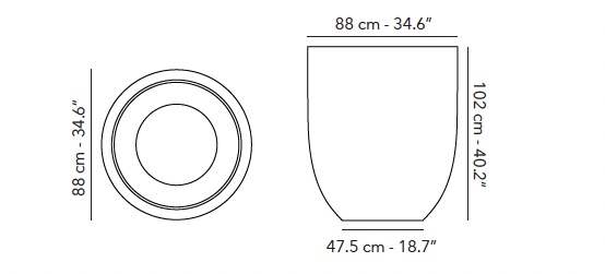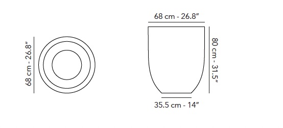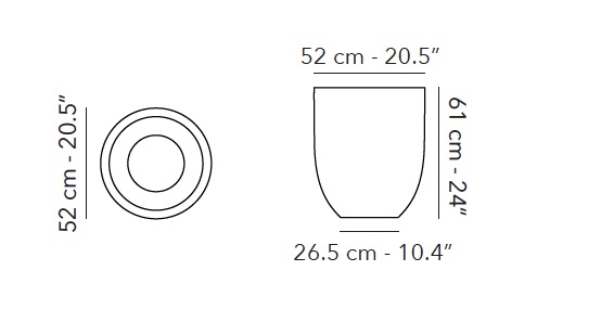 Chaque pot est fait avec des matériaux naturels, combinés à du FRP (= résine renforcé de fibres de verre). Un pot robuste, mais léger, résistant aux UV et au gel.