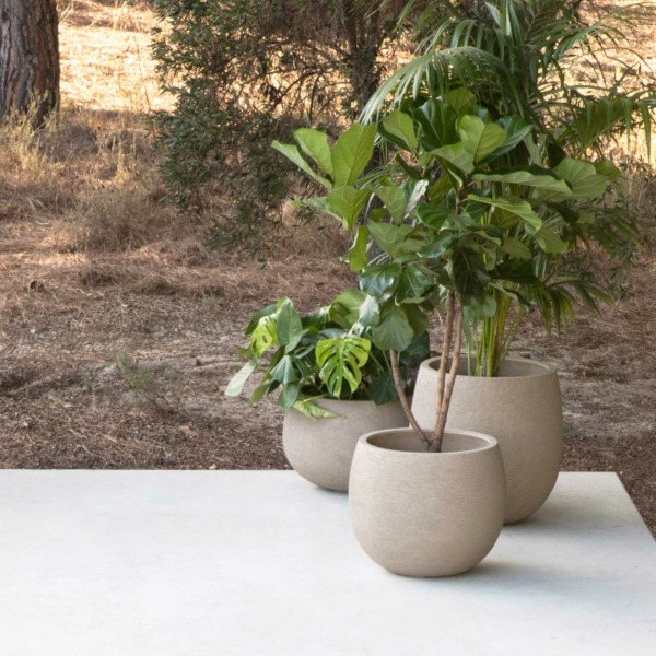 Chaque pot est fait avec des matériaux naturels, combinés à du FRP (= résine renforcé de fibres de verre). Un pot robuste, mais léger, résistant aux UV et au gel.
