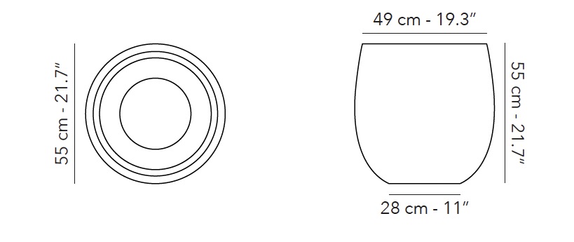 ø 55 x H35 cm, ø 55 x H45 cm, ø 55 x H55 cm, ø 55 x H35 + ø 55 x H45 + ø 55 x H55 cm