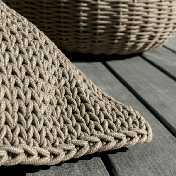 Le pouf bean bag Jackie de Talenti est adaptée à une utilisation à l’extérieur. Son revêtement en corde nautique et son rembourrage en mousse séchage rapide ne craint ni le soleil, ni la pluie.