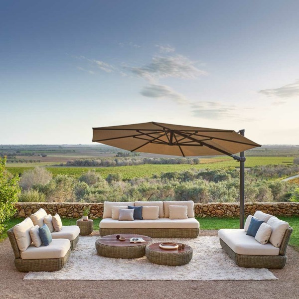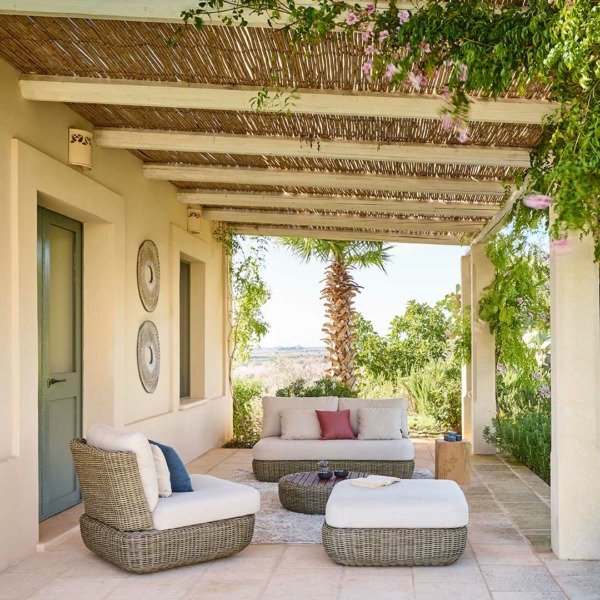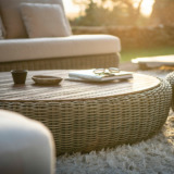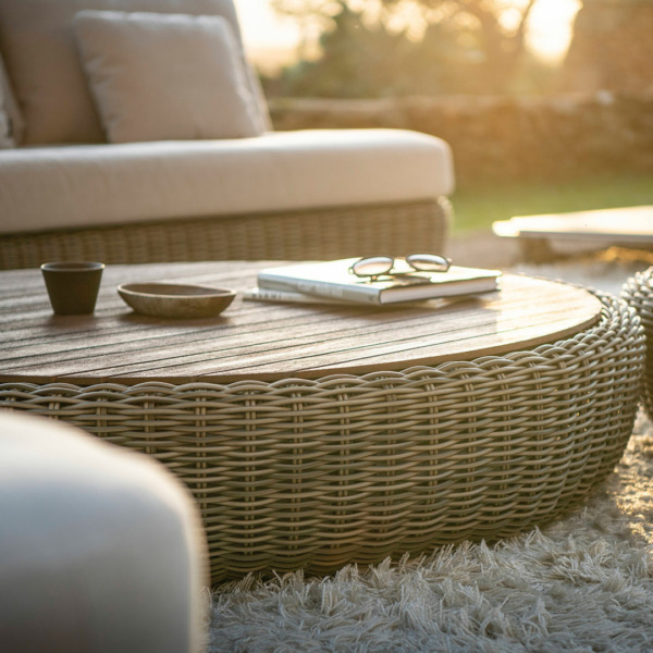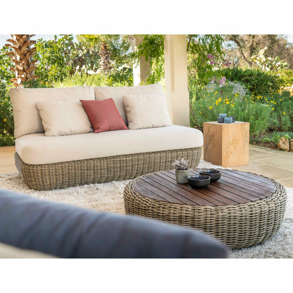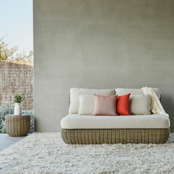 A la fois décontractée et ultra élégante, le canapé TUGU d’extérieur de Jardinico rond inspiré du mobilier en rotin scandinave est fabriqué artisanalement en osier tressé à la main . Ce matériau durable et résistant aux intempéries reproduit à la perfection l’aspect chaleureux et authentique typique du tressage en fibres naturelles.