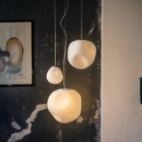 Hoba est un résultat des nombreuses années de recherche sur le verre soufflé, mené par les designers Ludovica + Roberto Palomba avec Foscarini. Disponible aussi en version lampe de table et applique.