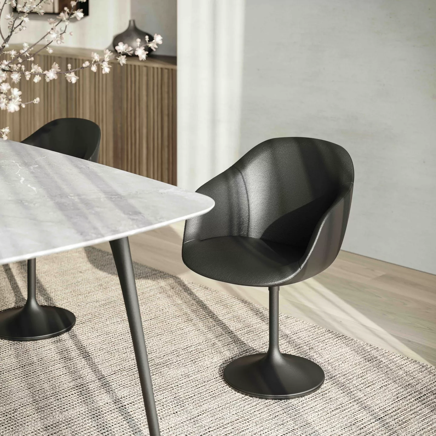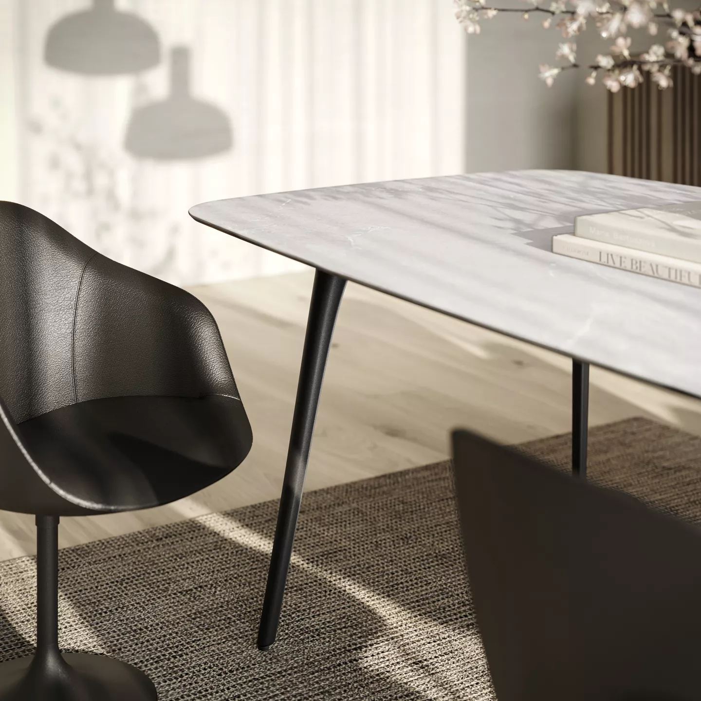 Les pieds sont astucieusement positionnés pour garantir un confort optimal : aucun risque d’encombrer les jambes des convives.