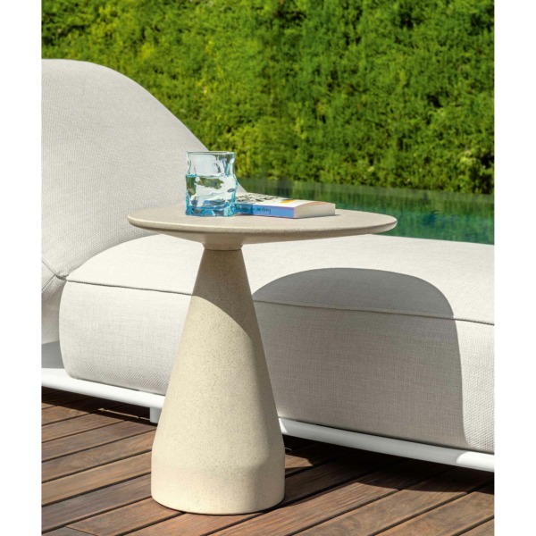 La table basse Plaza de Talenti en béton est définie par des lignes douces et sinueuses. Elle s’intègre naturellement dans le jardin et donne du dynamisme aux espaces extérieurs.
