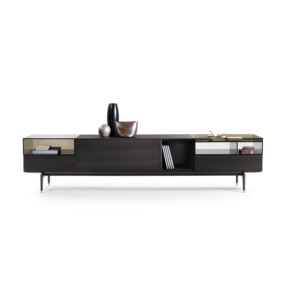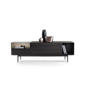 De multiples combinaisons originales peuvent être obtenues avec les finitions des plateaux disponibles pour la table à manger au plateau particulièrement épais, allant du plaqué noyer canaletto ou frêne, en un large choix de nuances, au laqué brillant dans une gamme de couleurs raffinées.