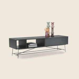Structure en métal finition bruni ou canon de fusil. Repose sur des embouts de pieds en matériau thermoplastique