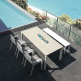 Cette élégante table d’extérieur extensible de la série Milo de Talenti présente une structure en aluminium et un plateau en céramique. Grâce aux rallonges incluses dans la structure, la table peut être rallongée jusqu’à 260 cm et en ajoutant des panneaux supplémentaires en céramique, nous obtenons une longueur de 3,2 mètres. Elle s’associe parfaitement à la chaise Milo, ou le banc, moderne et intemporel.