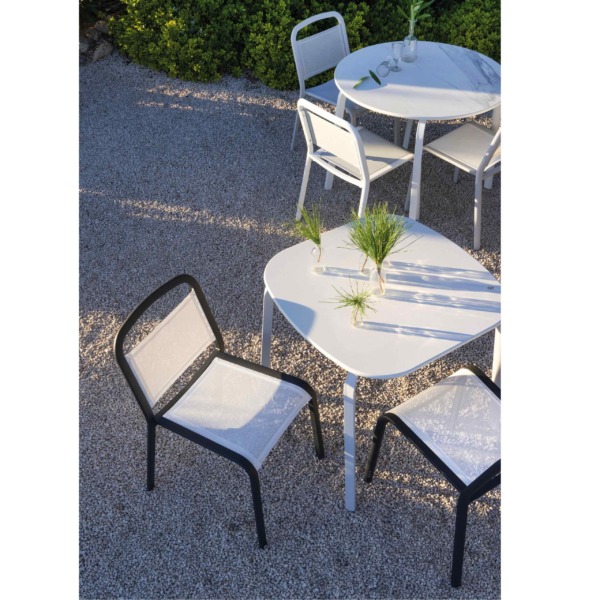 Sublime table MARUMI de la marque lyonnaise EGO Paris, conçue pour un usage extérieur comme intérieur.