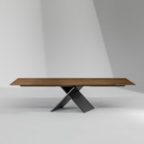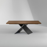 La table extensible AX de Bonaldo, a un caractère à la fois sophistiqué et moderne. Le plateau est réalisé en céramique haut de gamme ou en bois de chêne ou noyer. Sa base sculpturale en métal thermolaqué, permettant une obstruction minimale et maximisant l’espace sans perdre la solidité, disponible dans une variété de couleurs de peinture métallisée ou en finition polie.