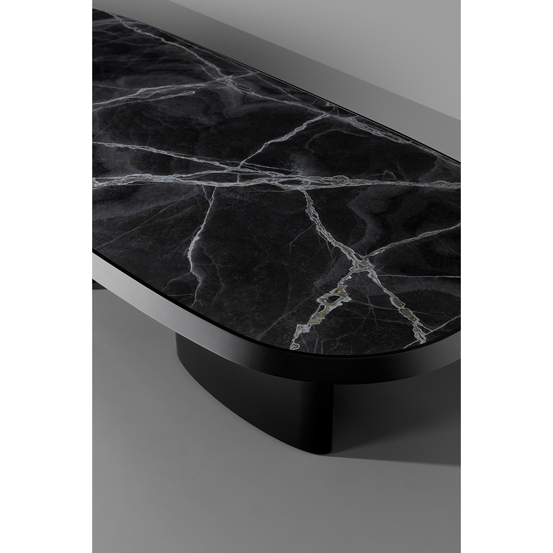 Imaginée par Alain Gilles, la table Padiglioni rend hommage à l’architecture moderniste du célèbre Pavillon de Barcelone de Mies van der Rohe.