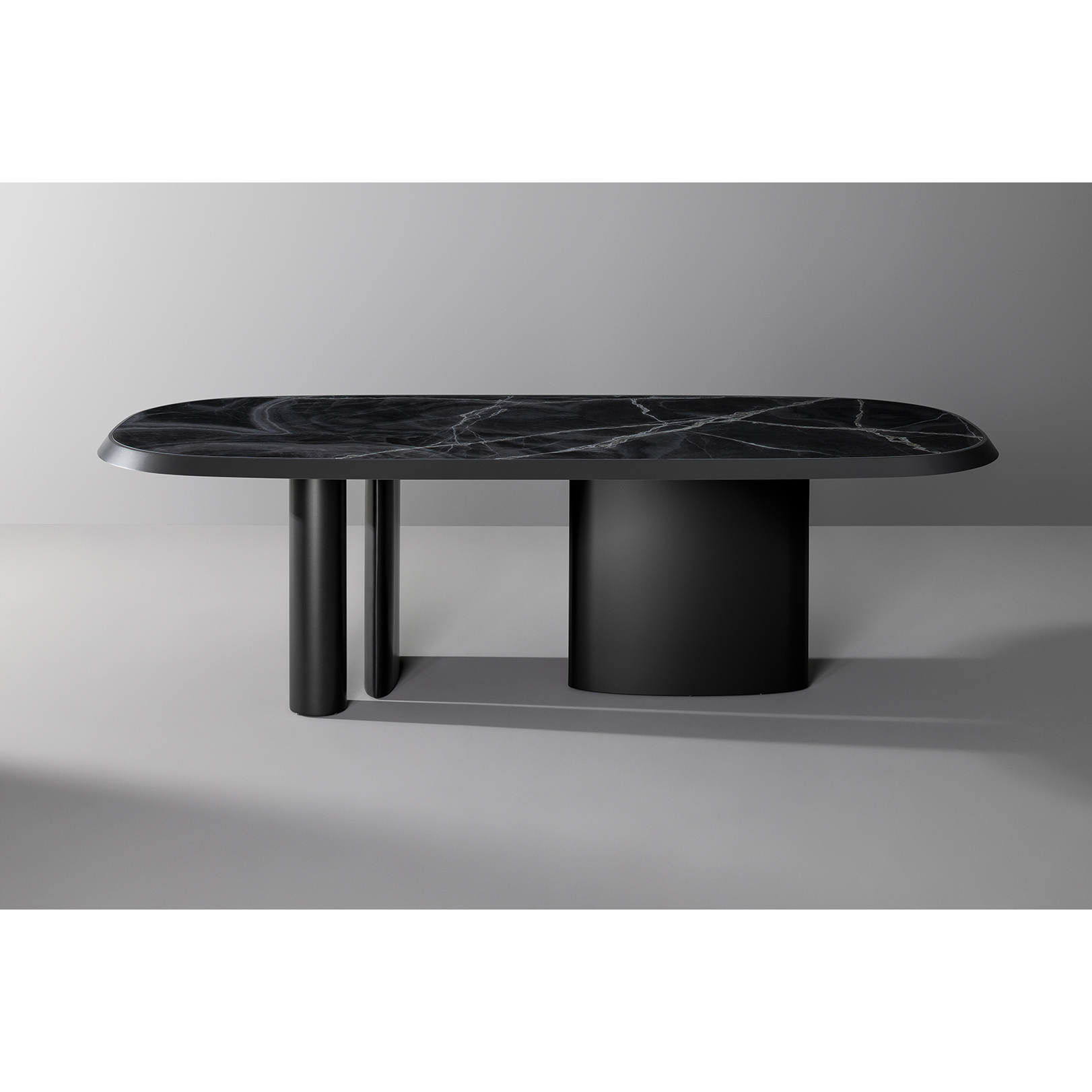 Sa silhouette sculpturale attire le regard : trois volumes asymétriques s’entrelacent pour former une base dynamique, presque en mouvement. Chaque élément semble indépendant, et pourtant, ensemble, ils trouvent un équilibre inattendu.